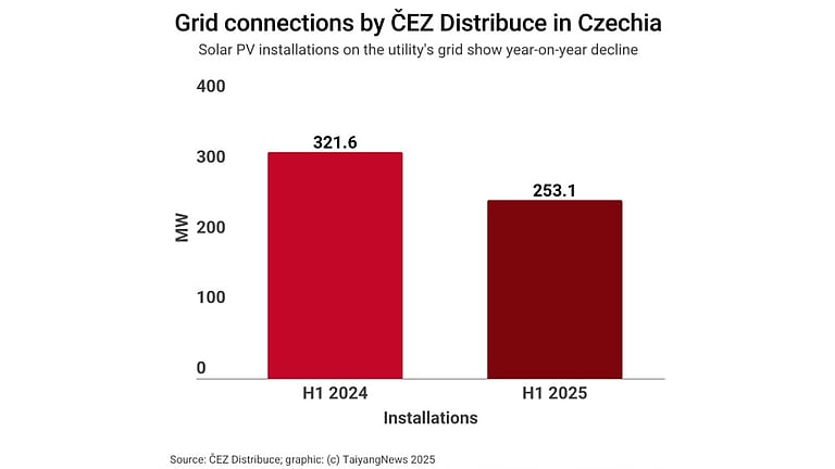 ČEZ Distribuce grid-connected 9,084 solar PV systems totaling 253.1 MW, mostly paired with storage, in H1 2025