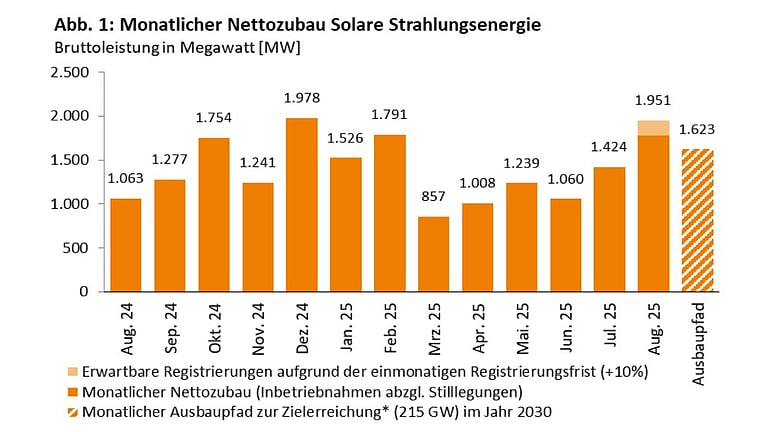 Germany’s August solar gains strengthen 2030 target trajectory, narrowing monthly requirement to 1.623 GW. (Photo Credit: Bundesnetzagentur)