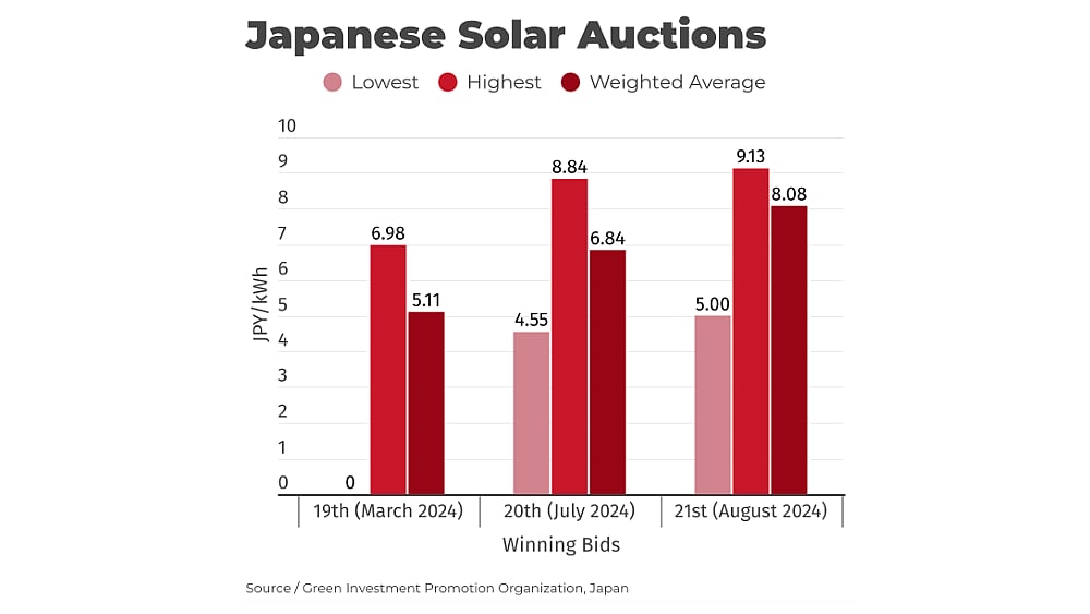 Japan has completed another of its utility-scale solar energy auction rounds with the Green Investment Promotion Organization (OCCTO) awarding 33.67 MW capacity against 107 MW on offer under the 21st solar energy auction. This is its 2nd solar energy auction in FY 2024.